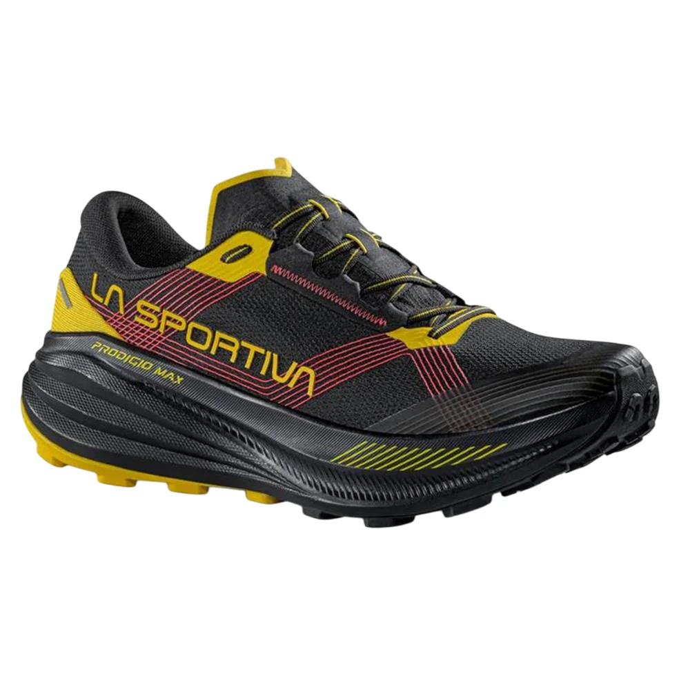 La Prodigio Max è la scarpa da trail running La Sportiva pensata per le lunghe distanze e le ultra trail. Massima ammortizzazione, comfort e protezione si uniscono in un modello leggero e reattivo, capace di sostenerti anche dopo molti chilometri.